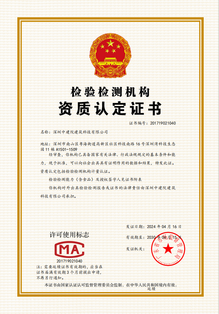 深圳中建院綜合檢測(cè)實(shí)驗(yàn)室建設(shè)工作進(jìn)展順利,建筑節(jié)能、綠色建筑新增項(xiàng)目已取得CNAS 、CMA資質(zhì)擴(kuò)項(xiàng)證書,幕墻實(shí)驗(yàn)室已完成設(shè)備主體安裝工作,繼續(xù)進(jìn)行資質(zhì)能力建設(shè)及部分新增項(xiàng)目擴(kuò)項(xiàng)審核工作。