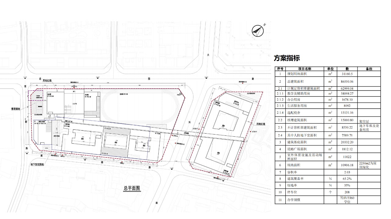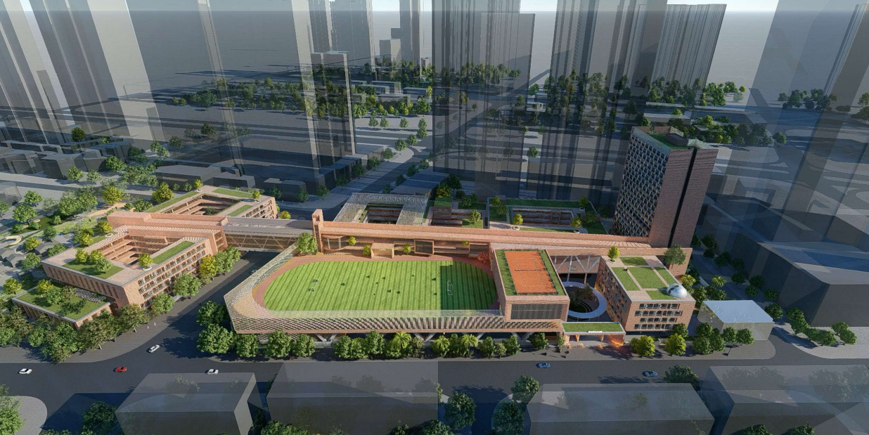 項目位于廣東省深圳市龍崗區龍崗大道以北,龍城廣場地鐵站東北側約400米,屬于龍崗街道的教育配套設施,將建成為九年一貫制72班學校。總用地面積31160.5平方米,總建筑面積86550.56平方米,其中教學及輔助用房36536平方米,辦公用房1306平方米,生活服務用房8092平方米,選配校舍40616.56平方米。建設內容包括小學及初中教學樓、未來教育中心、藝術樓、操場架空+食堂、教工宿舍樓、地下車庫等建筑物及室外運動場、道路廣場、綠化等室外設施。