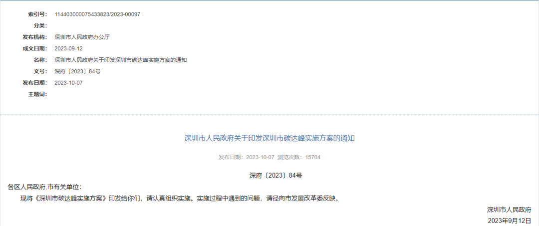深圳市碳達峰實施方案
